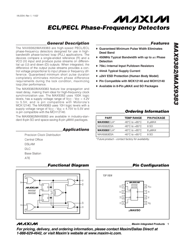 MAX9382, MAX9383 ECL/PECL Phase-Frequency Detectors