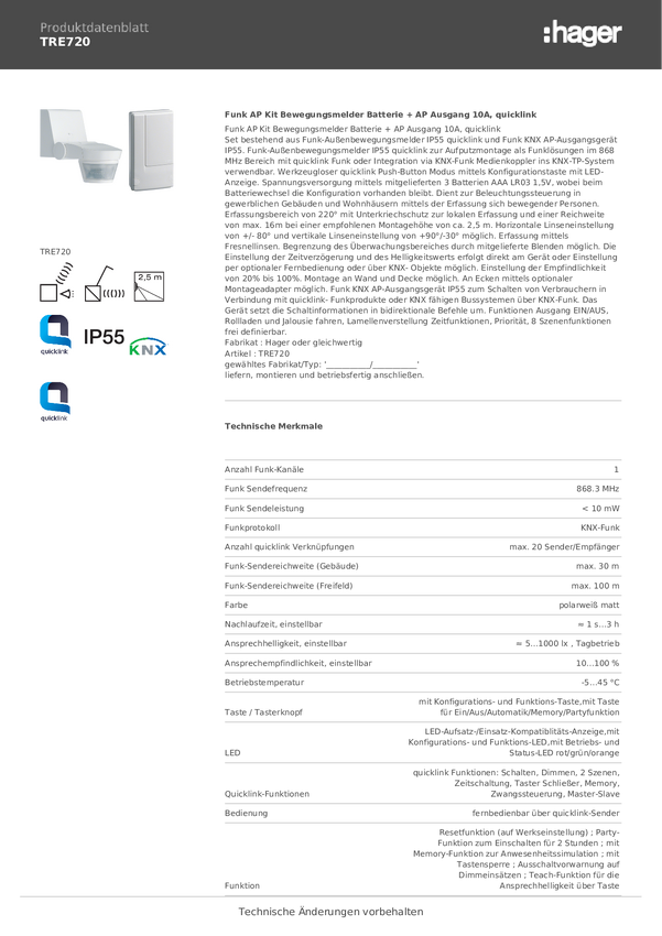 Detektor ruchu Hager TRE720 Zasięg maksymalny 16 m