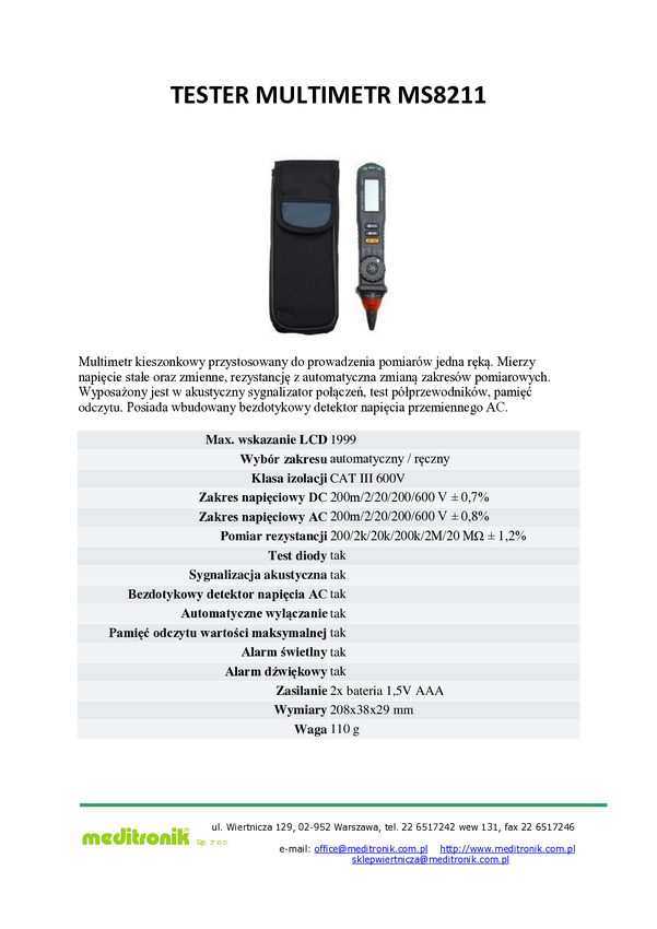 Detektor dwutlenku węgla [CO], zakres pomiarowy 400-40.000ppm, V=CO/10.000