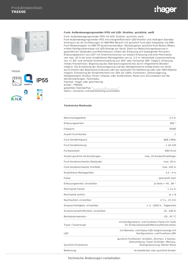 Detektor ruchu Hager TRE600 Zasięg maksymalny 12 m