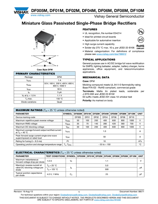 Miniature Glass Passivated Single-Phase Surface-Mount Bridge Rectifiers