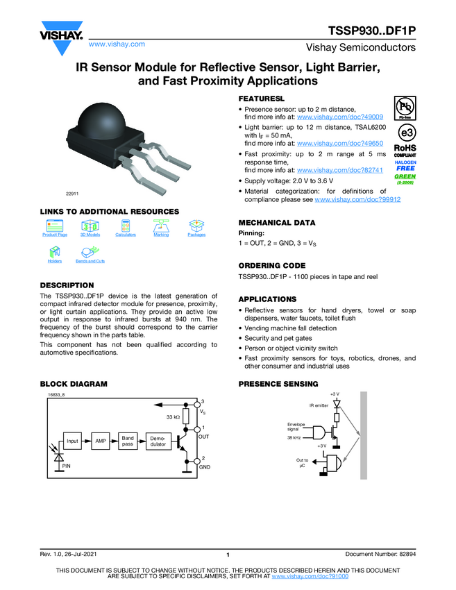 IR Sensor Module for Reflective Sensor, Light Barrier, and Fast Proximity Applications