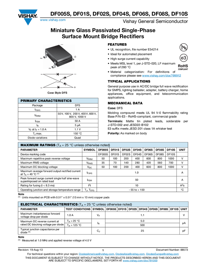 Miniature Glass Passivated Single-Phase Surface-Mount Bridge Rectifiers