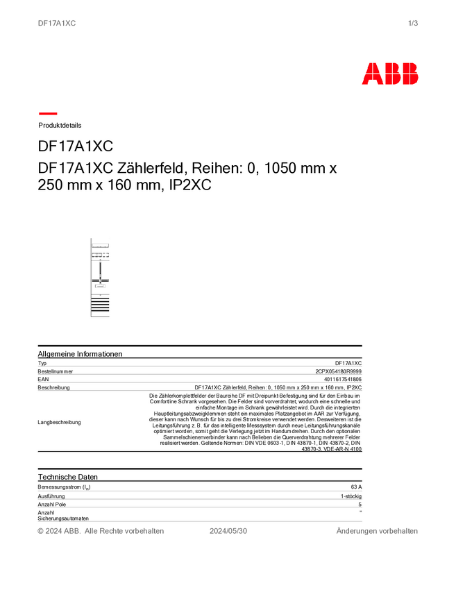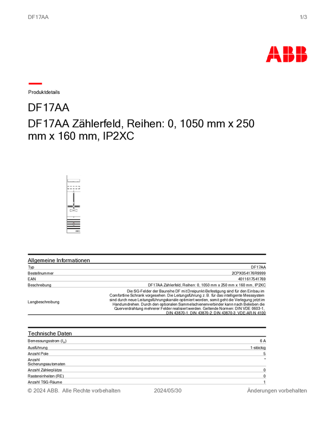 Pole licznika Striebel & John DF17AA 2CPX054176R9999, 250 mm x 1050 mm , 1 szt.