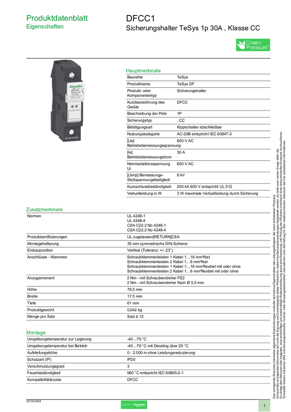 Schneider Electric DFCC1 Uchwyt bezpiecznika, 12 szt.
