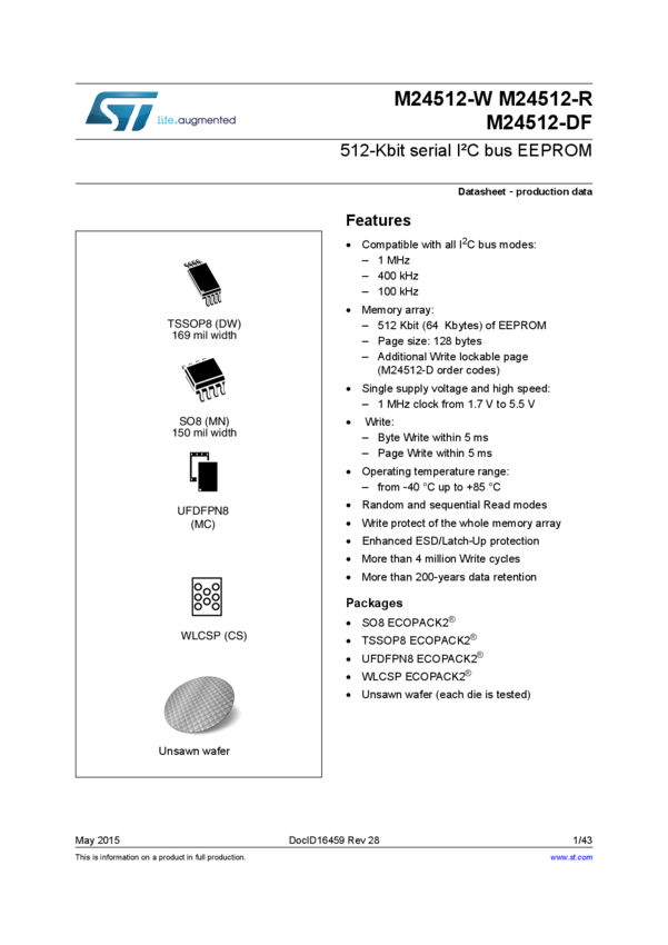 EEPROM Serial-I2C 512K-bit 64K x 8 1.8V/2.5V/3.3V/5V 8-Pin WLCSP T/R