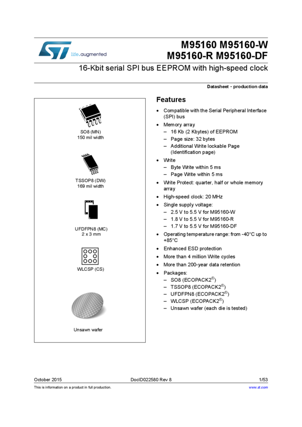 EEPROM Serial-SPI 16K-bit 2K x 8 1.8V/2.5V/3.3V/5V 8-Pin SOIC T/R