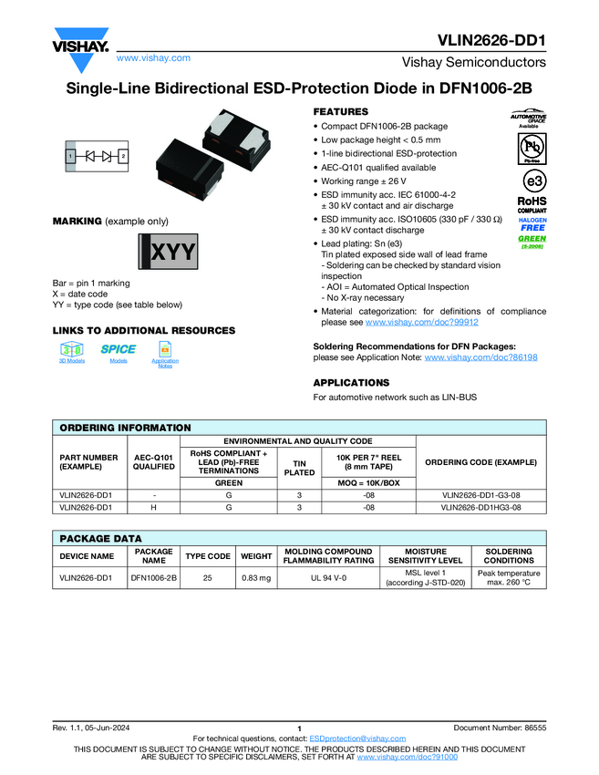 Single-Line ESD-Protection Diode in DFN1006-2A