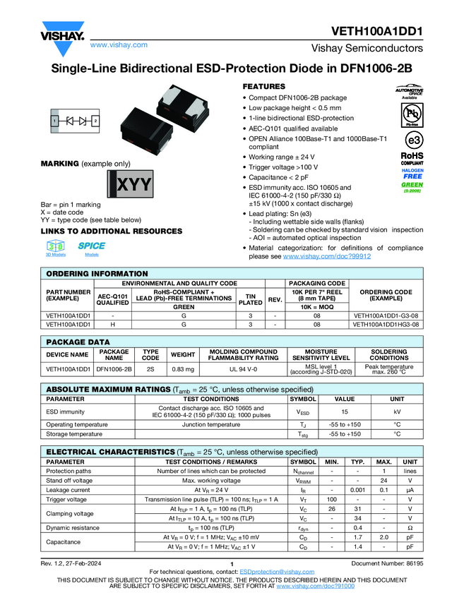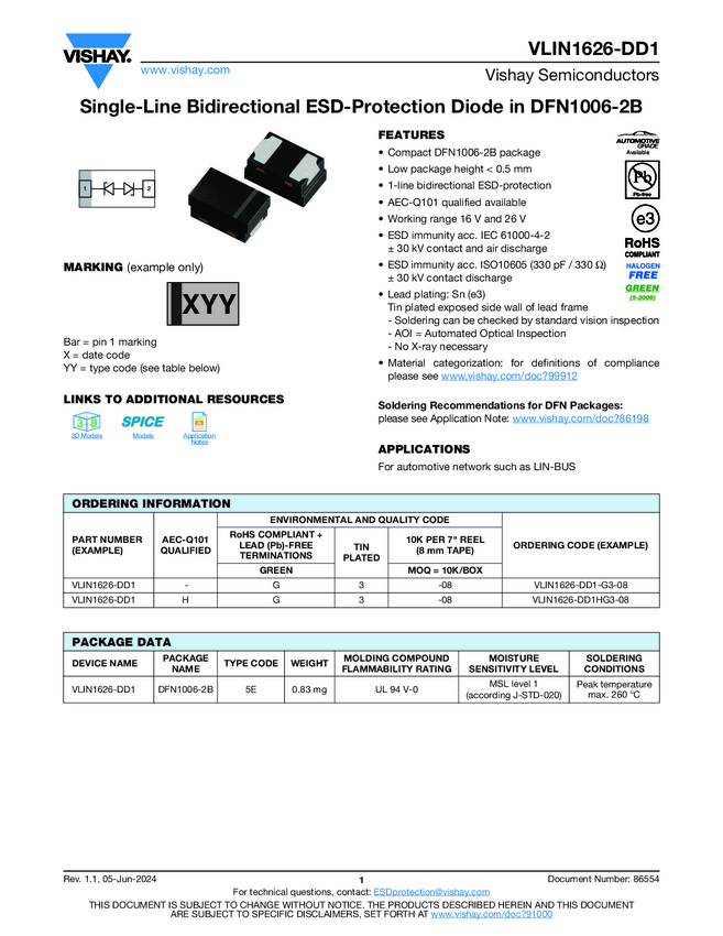 Single-Line Bidirectional ESD-Protection Diode in DFN1006-2B
