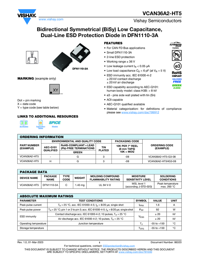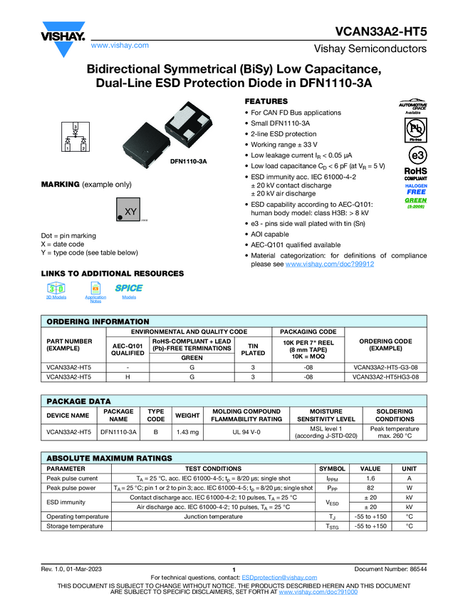 Bidirectional Symmetrical (BiSy) Low Capacitance, Dual-Line ESD Protection Diode in DFN1110-3A