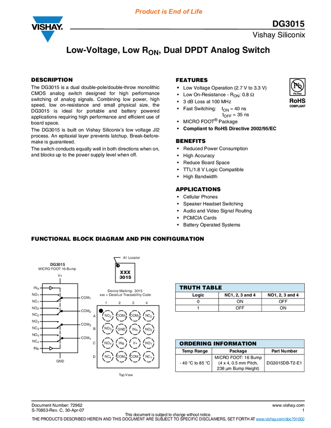 Low-Voltage, Low RON, Dual DPDT Analog Switch