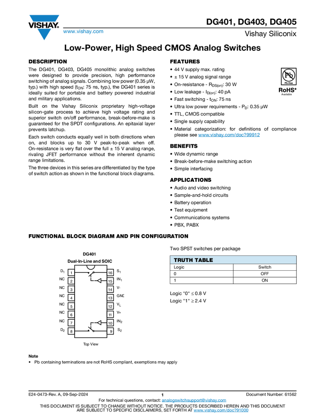 Low Capacitance, Low Charge Injection, 4- / 8-Channel, Triple SPDT, ± 5 V / 12 V / 5 V / 3 V Analog Multiplexers