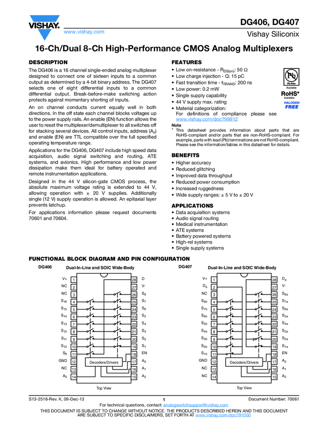 16-Ch/Dual 8-Ch High-Performance CMOS Analog Multiplexers