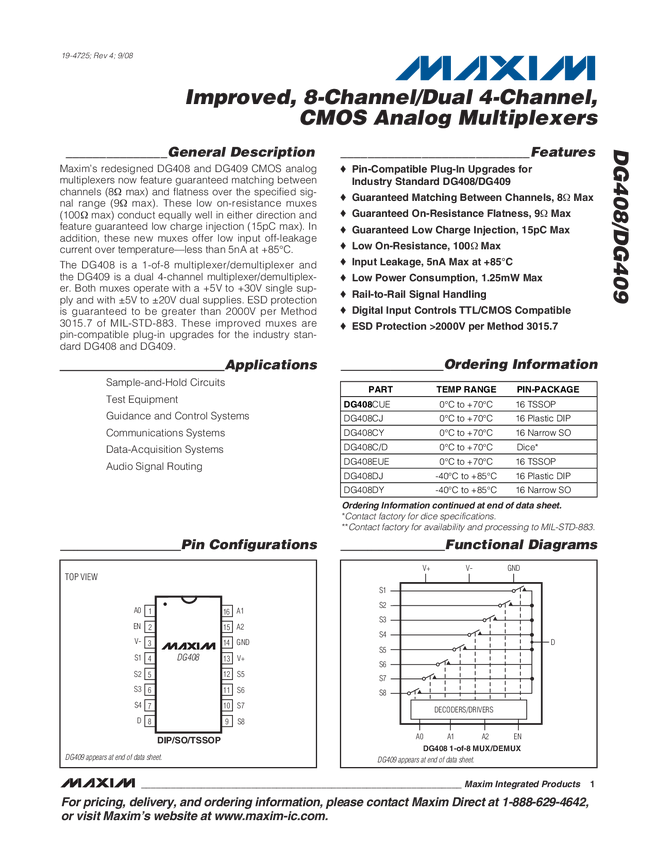 8-Ch/Dual 4-Ch High-Performance CMOS Analog Multiplexers
