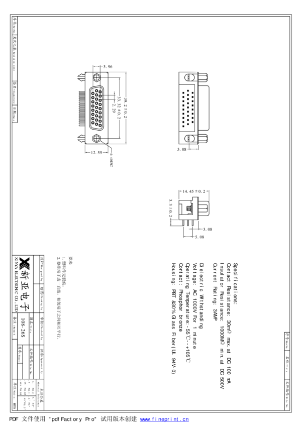 Złącze żeńskie D-Sub, 26-stykowe, 3-rzędowe, kątowe