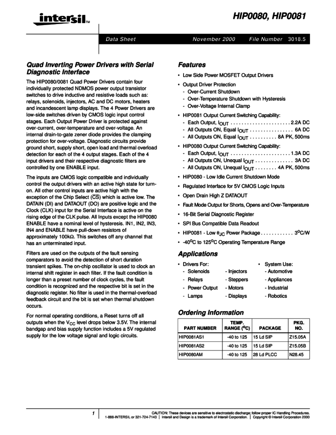 Quad-Gated Inverting Power Drivers with Fault Mode Diagnostic Flag Output
