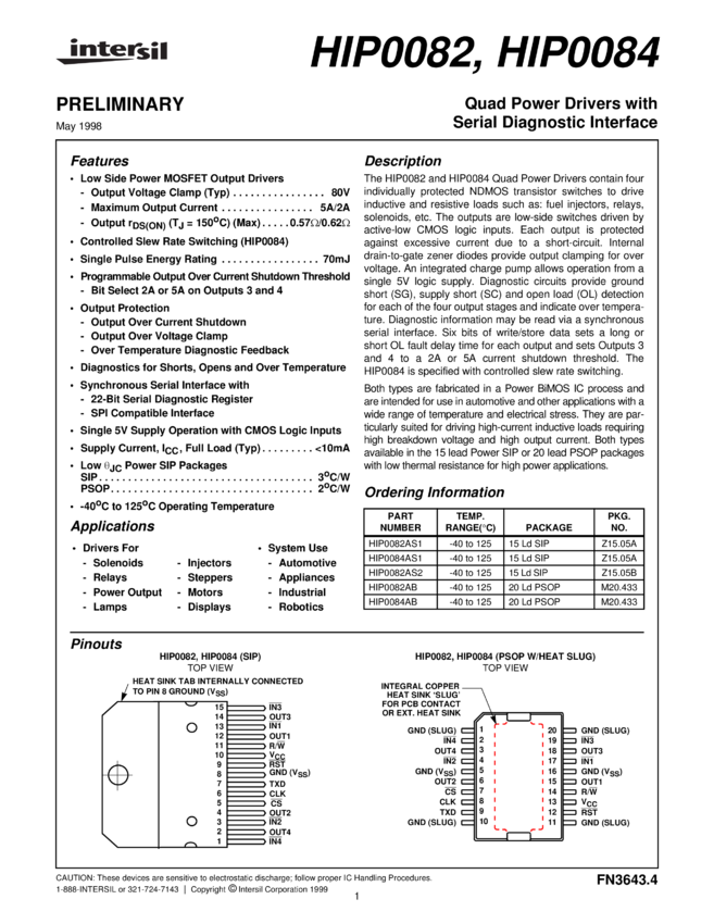 Quad Inverting Power Drivers with Serial Diagnostic Interface
