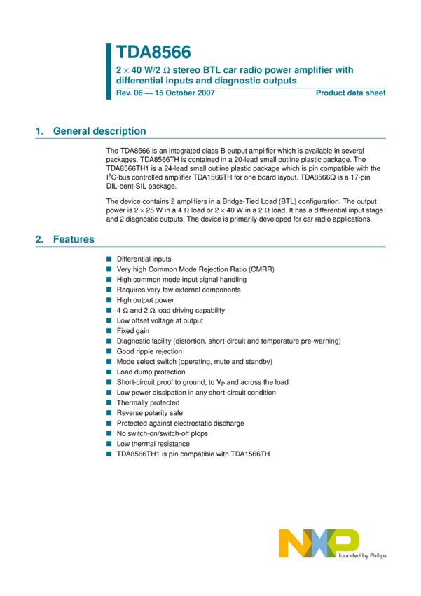 2 x 40 W/2 ohm stereo BTL car radio power amplifier with differential inputs and diagnostic outputs