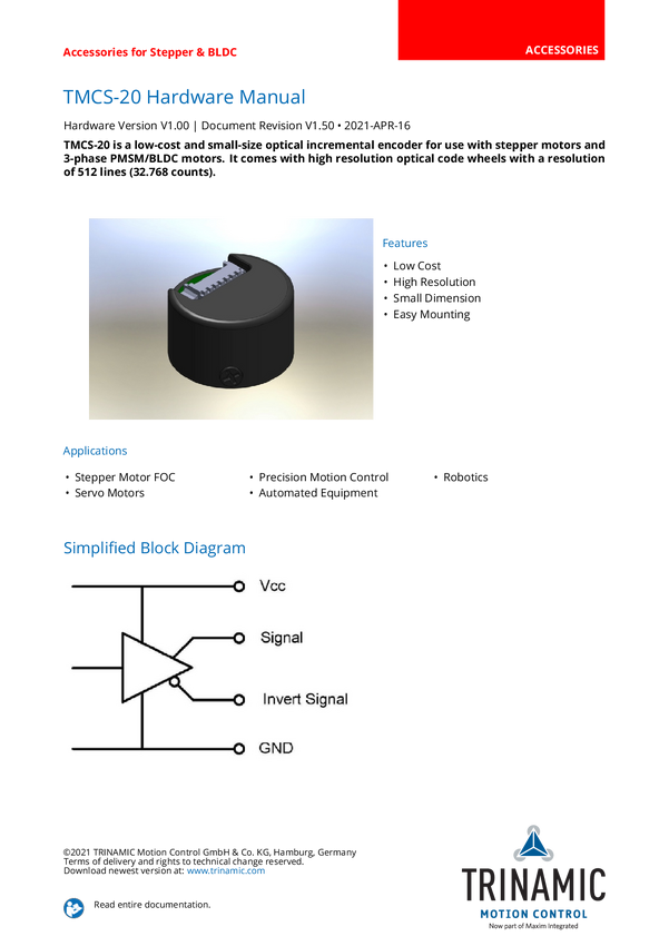 8192 lines A/B/N encoder with 20mm housing diameter for 4mm shaft diameter