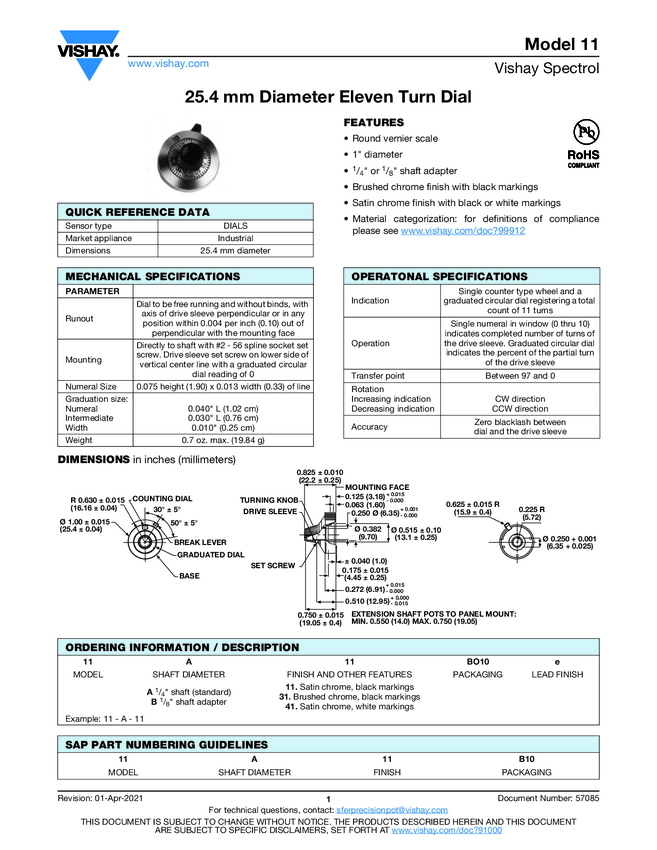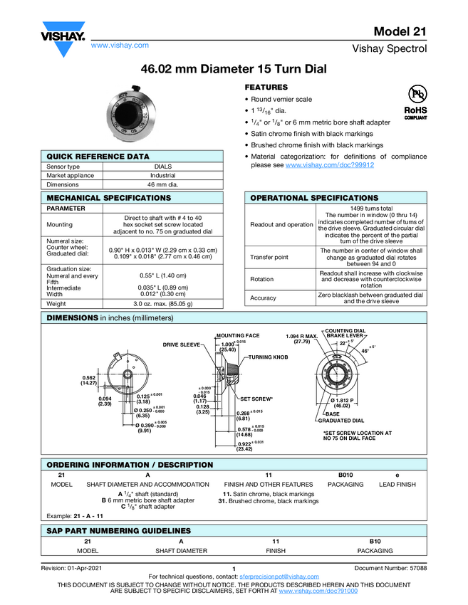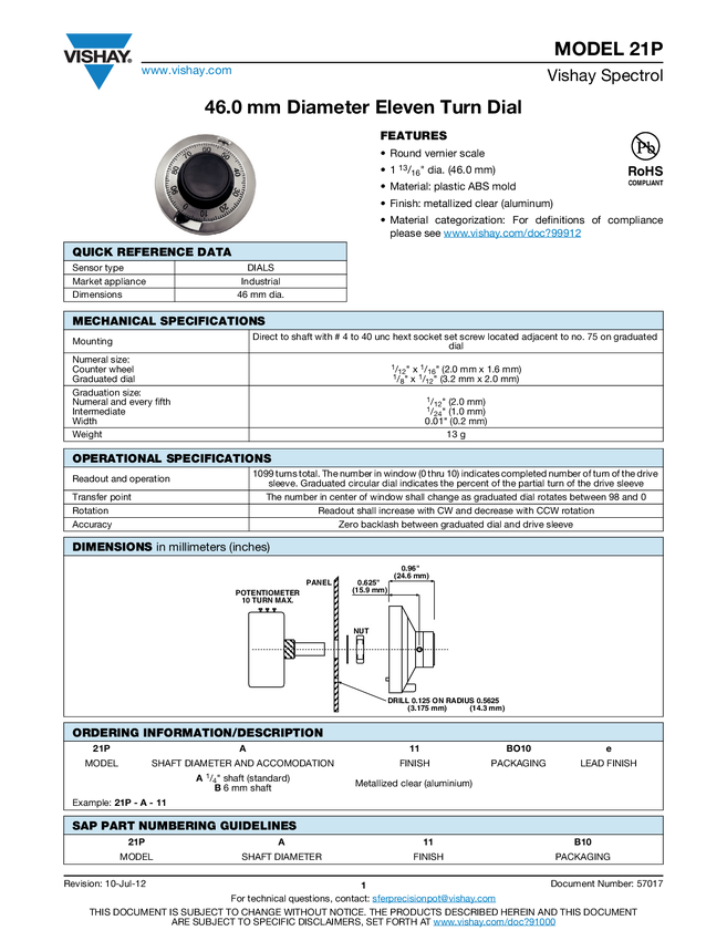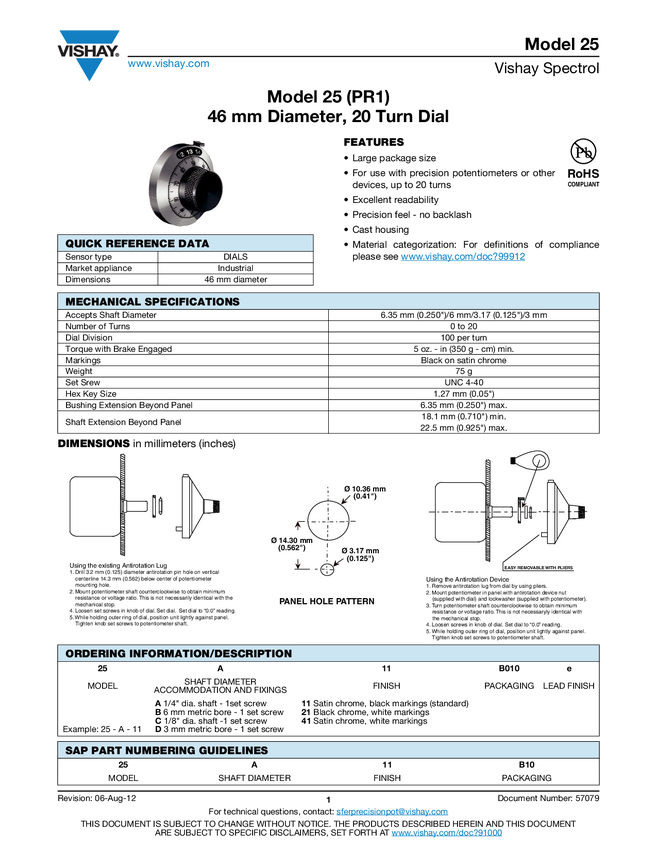 Model 25 (PR1) 46 mm Diameter, 20 Turn Dial