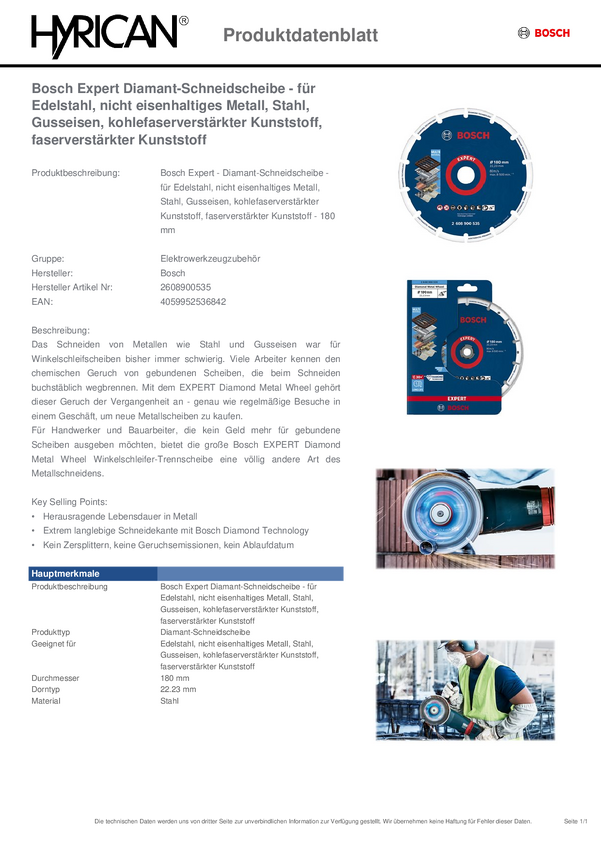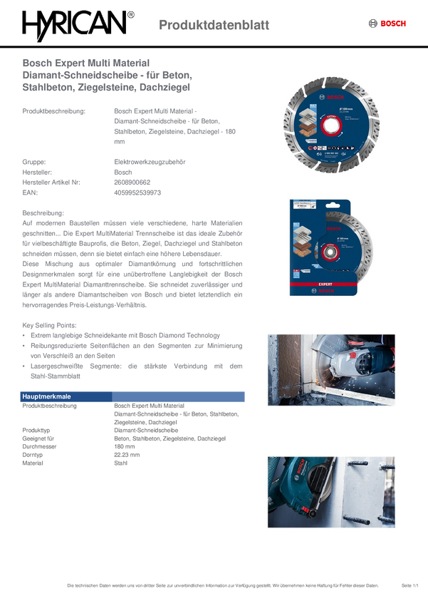 Bosch Accessories 2608900662 EXPERT MultiMaterial Tarcza tnąca diamentowa Średnica 180 mm Średnica otworu 22.23 mm kamie