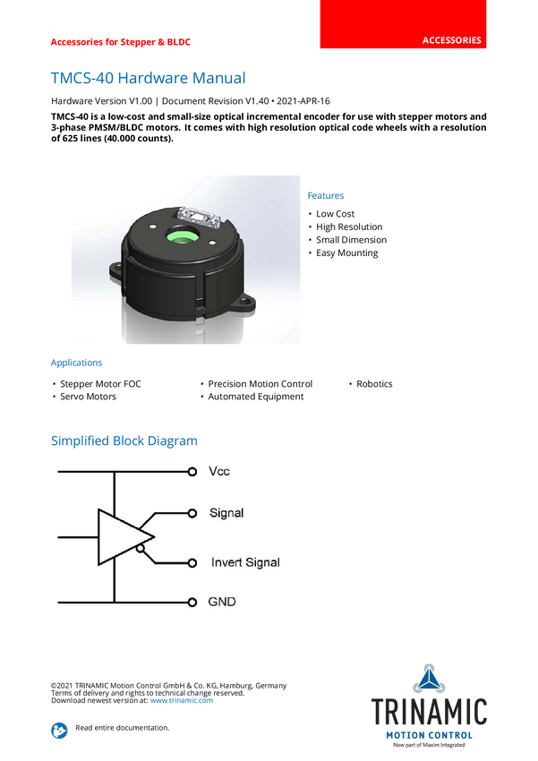 10.000 lines A/B/N encoder with 40mm housing diameter for 6.35mm shaft diameter