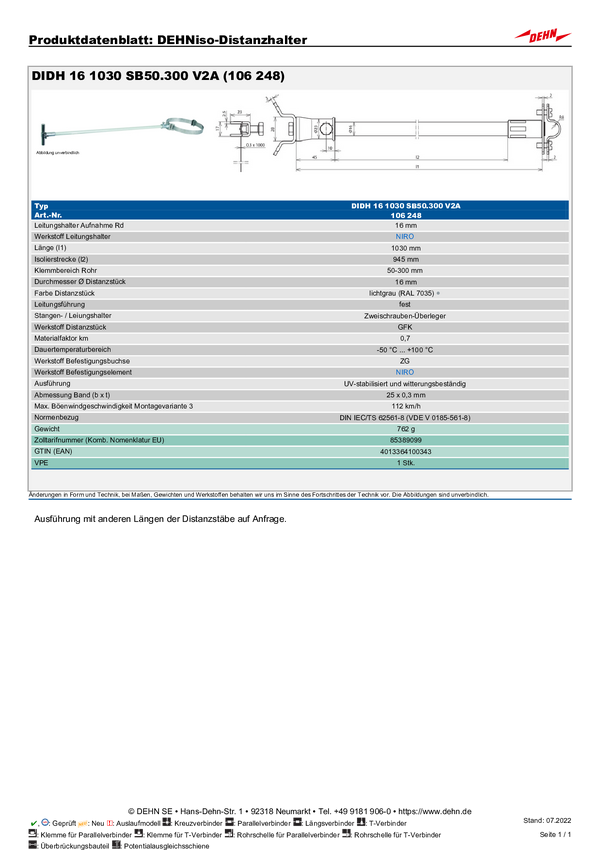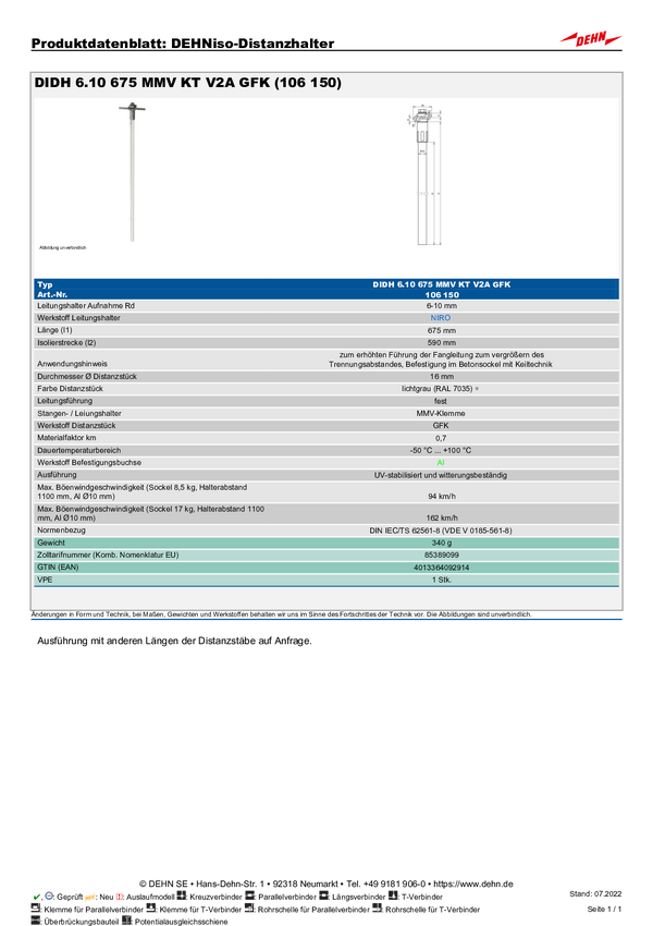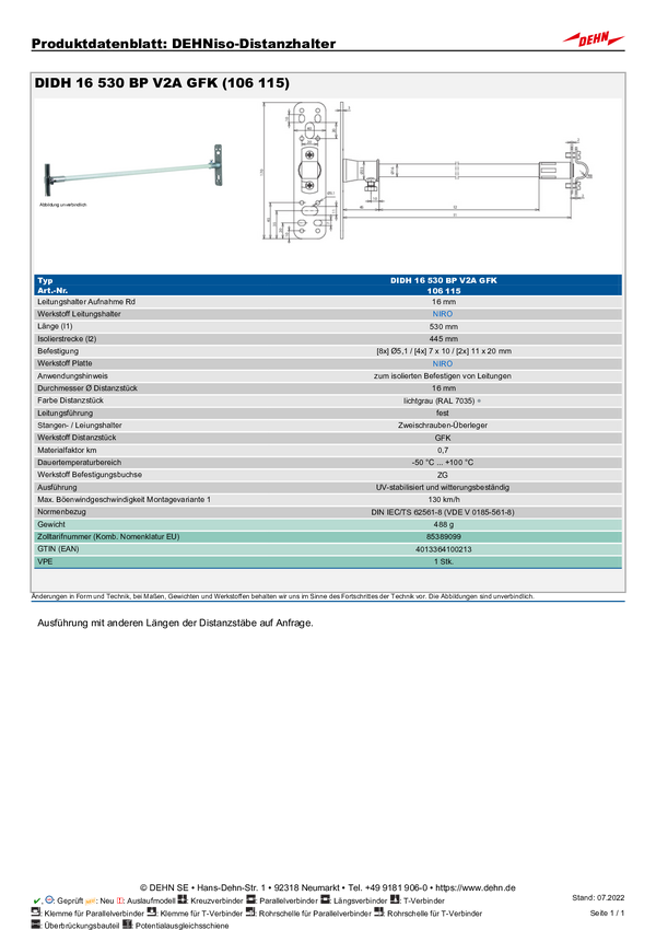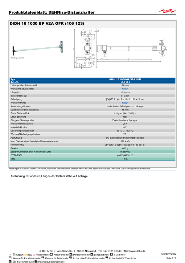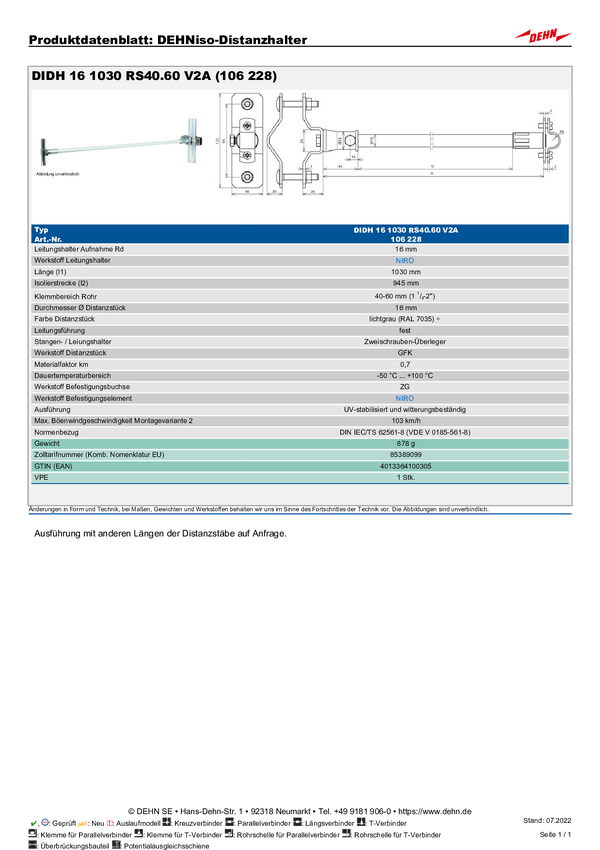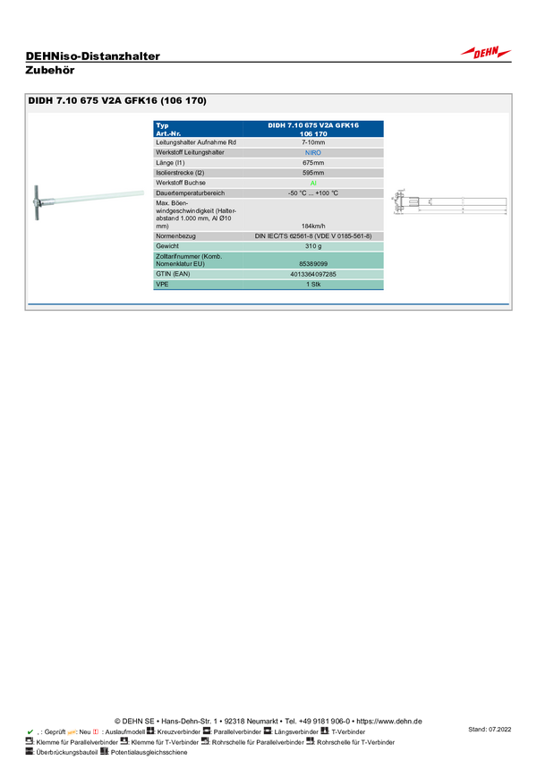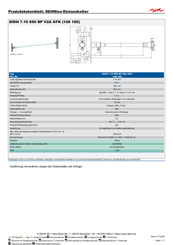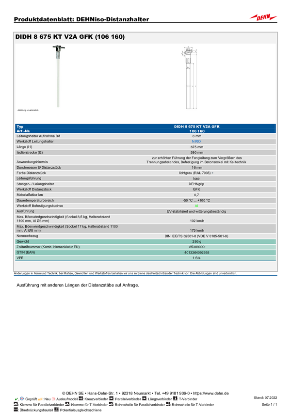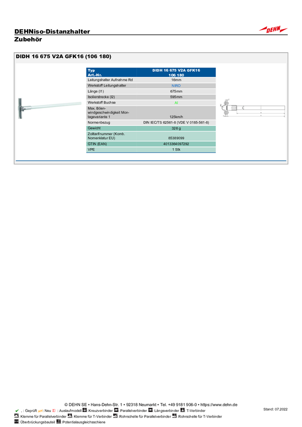 DEHN 106170 DIDH 7.10 675 V2A GFK16 Akcesorium montażowe 1 szt.