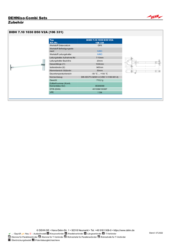 DEHN 106331 DIDH 7.10 1030 D50 V2A Akcesorium montażowe 1 szt.