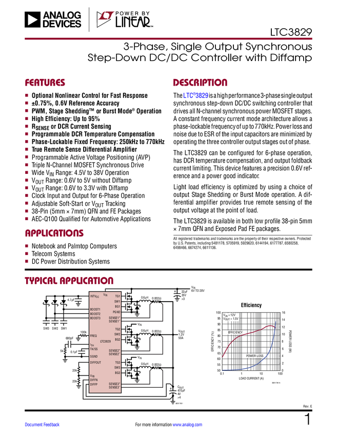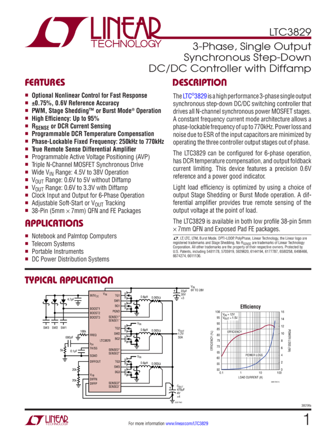 3-Phase, Single Output Synchronous Step-Down DC/DC Controller with Diffamp