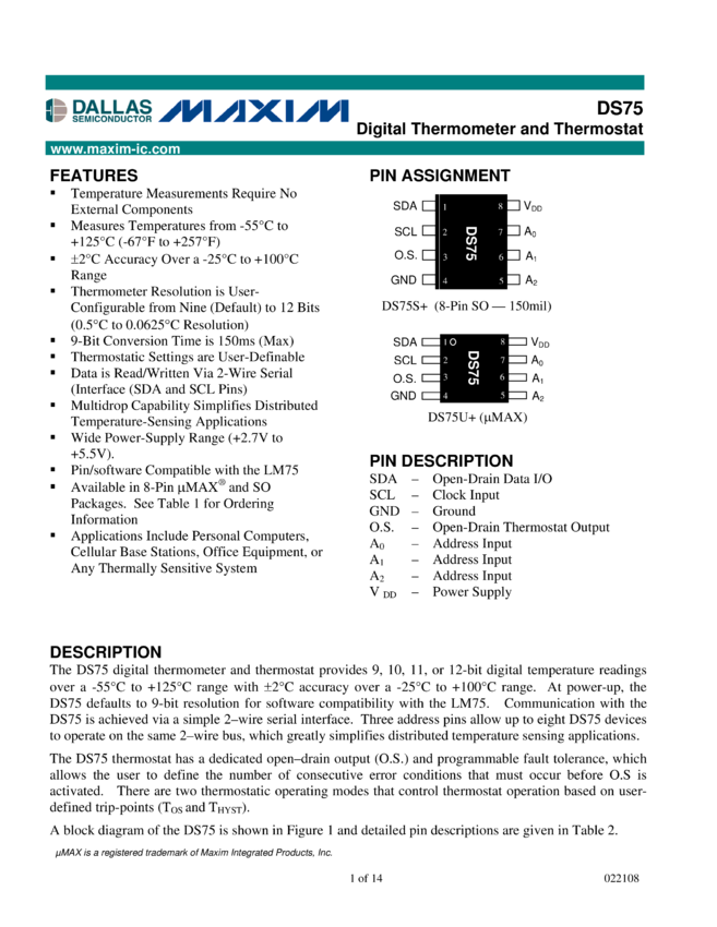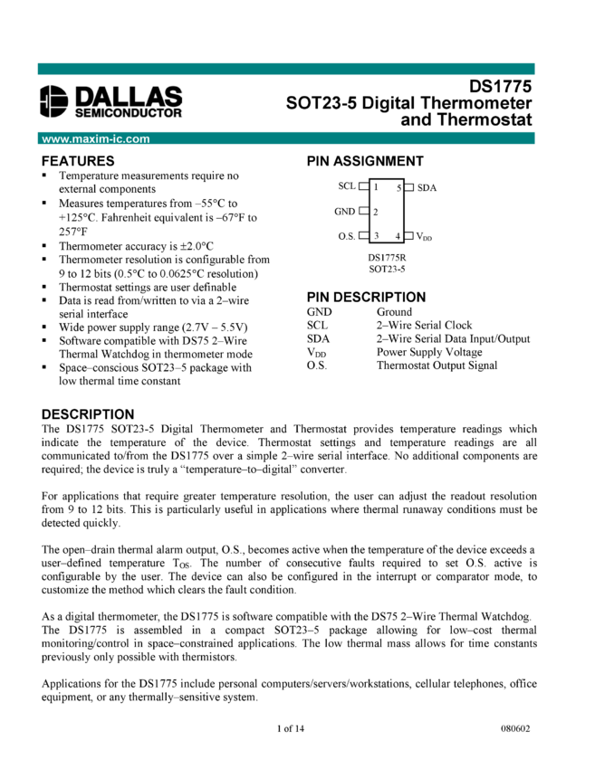 DS1775, DS1775R Tiny Digital Thermometer and Thermostat
