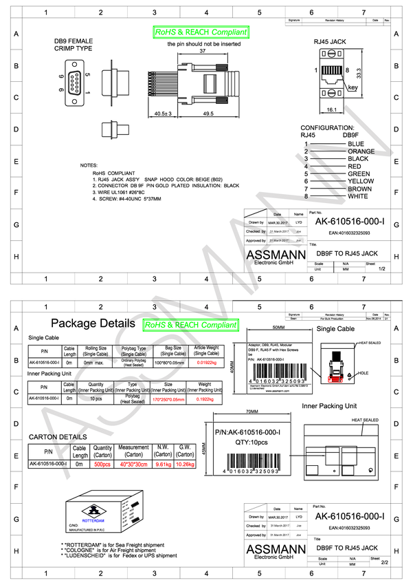Adapter D-Sub Digitus AK-610516-000-I złącze żeńskie D-SUB 9-pin - złącze żeńskie RJ45