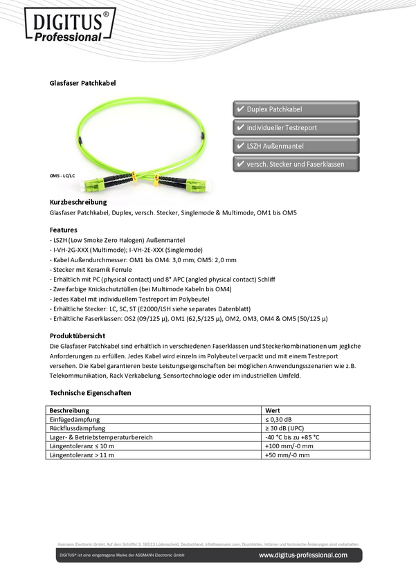 Digitus DK-2533-03-5 światłowodowe do światłowodów kabel 3.00 m zielony [1x złącze męskie LC - 1x złącze męskie LC] 50/1
