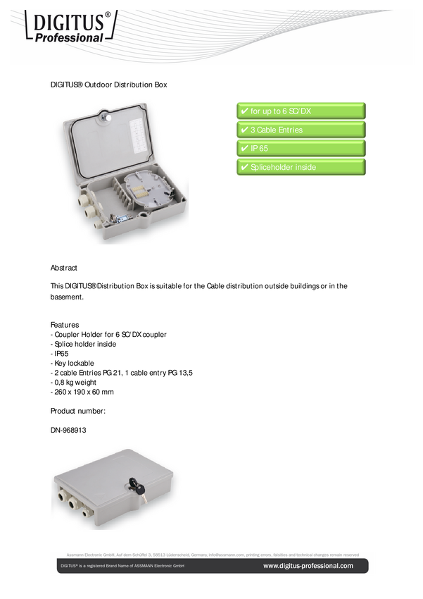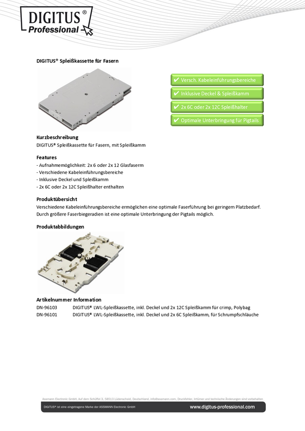 Kaseta światłowodowa Digitus DN-96103, 1 szt.