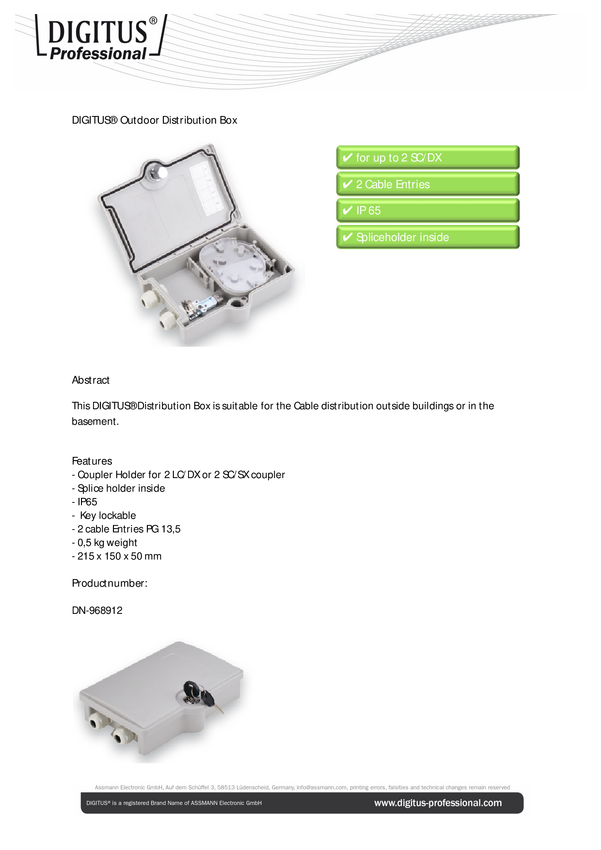 Skrzynka dystrybucyjna Digitus DN-968912 2 Porty SC, LC