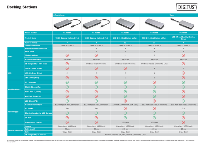 Stacja dokująca USB-C® Digitus DA-70918 z funkcją ładowania
