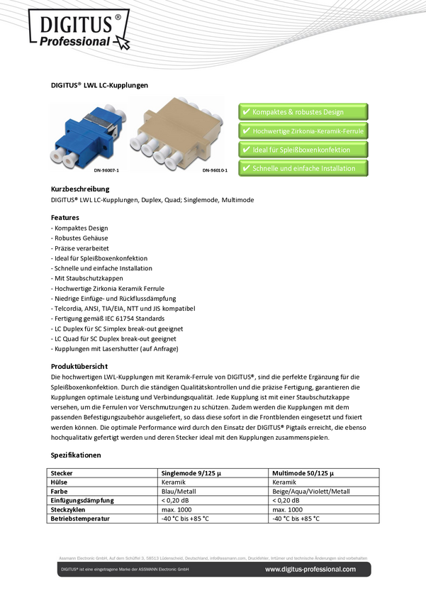 Łącznik światłowodu Digitus DN-96009-1, 1 szt.