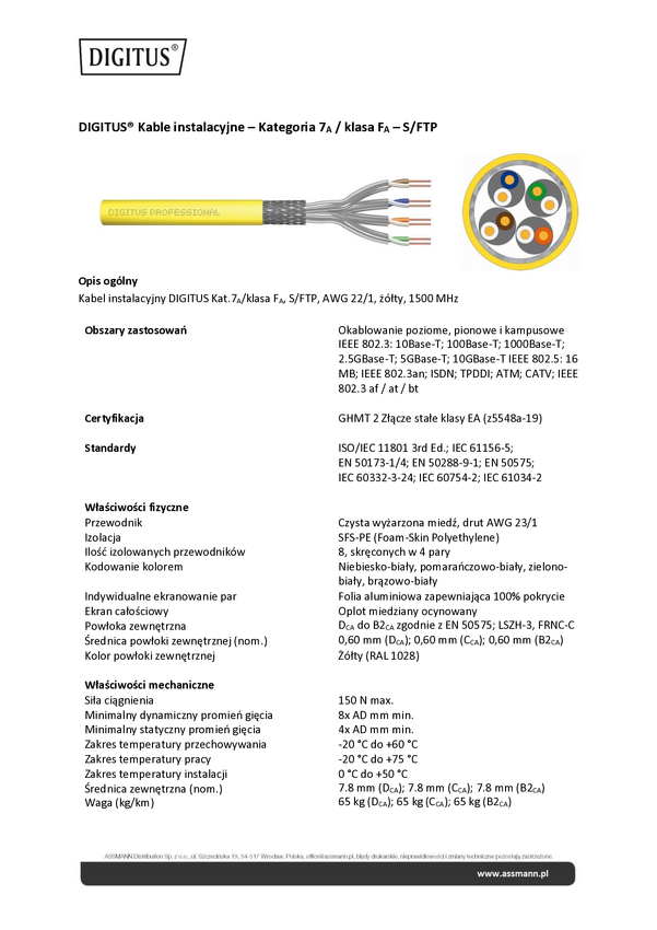 Digitus DK-1743-VH-305-MF-W Przewód sieciowy CAT 7 S/FTP 8 x 0.4 mm biały 305 m