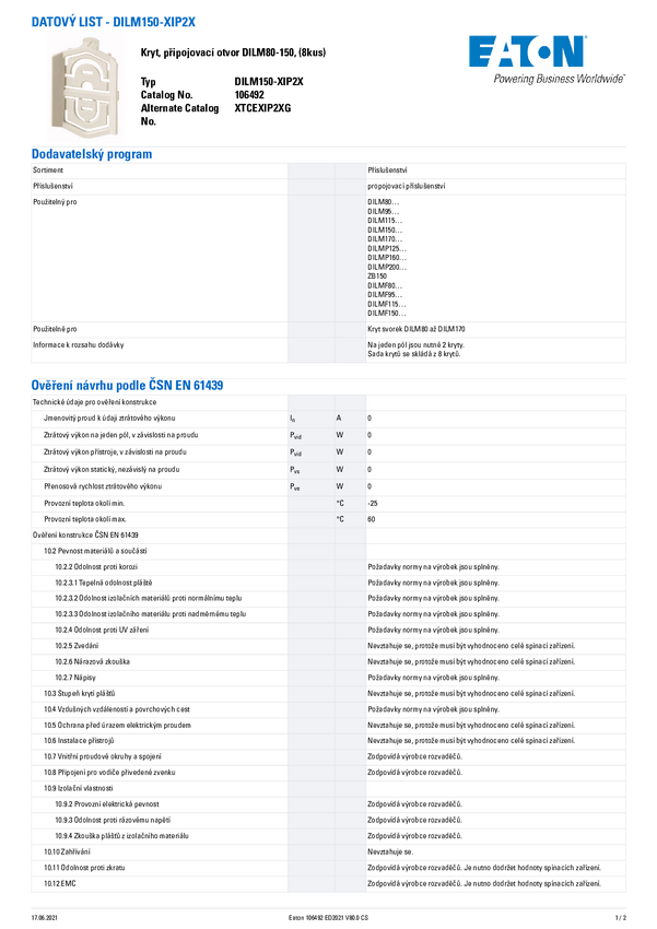Pokrywa Eaton DILM150-XIP2X 1 szt.