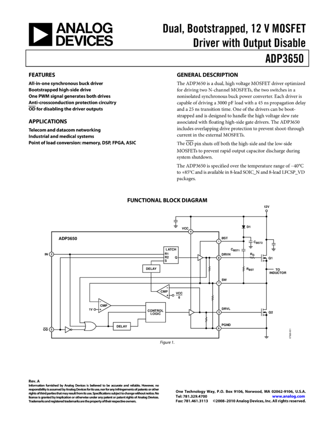 ADP3650: Dual Bootstrapped, 12V MOSFET Driver with Output Disable