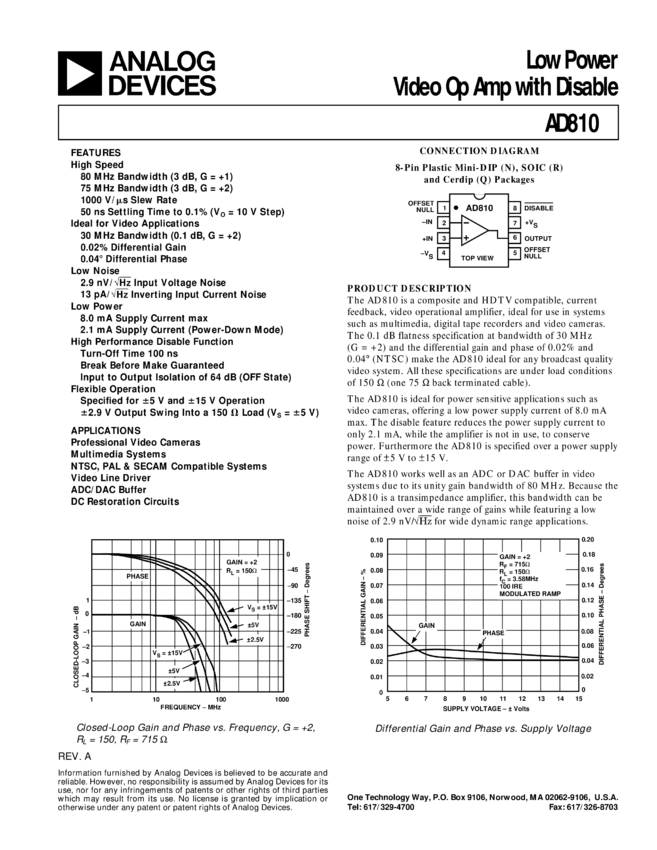 AD810: Low Power Video Op Amp with Disable