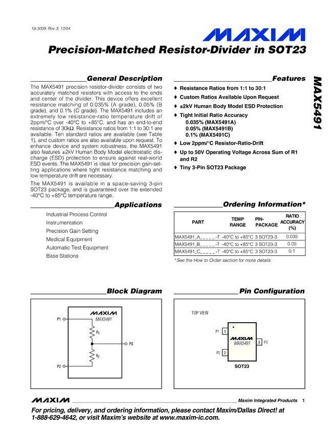 MAX5491 Precision-Matched Resistor-Divider in SOT23