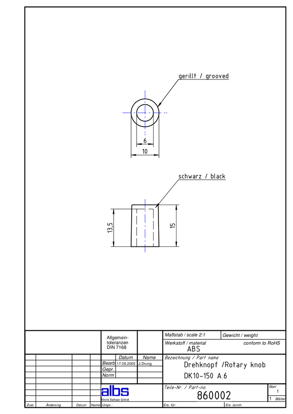 ALPS DK10-150/A.6 DK10-150/A.6 Pokrętło (Ø x W) 10 mm x 15 mm 1 szt.