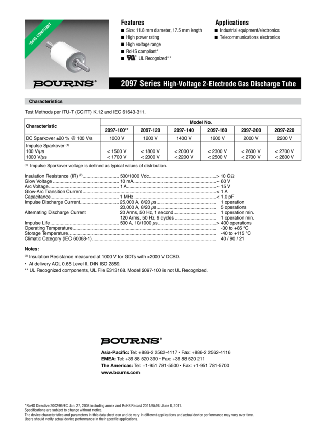 Surge Arrestor 2-Electrode Gas Discharge Tube 1600VDC 25kA Panel Mount Bulk