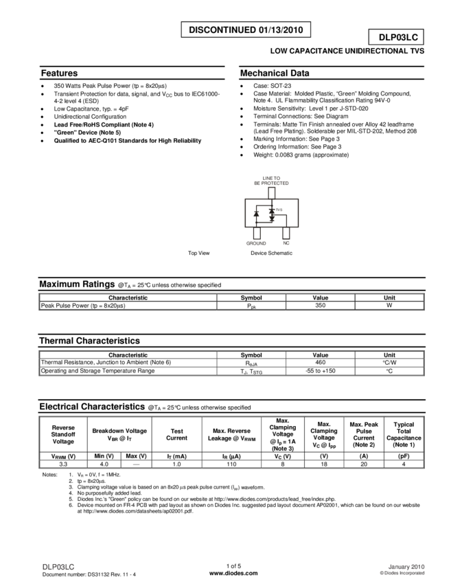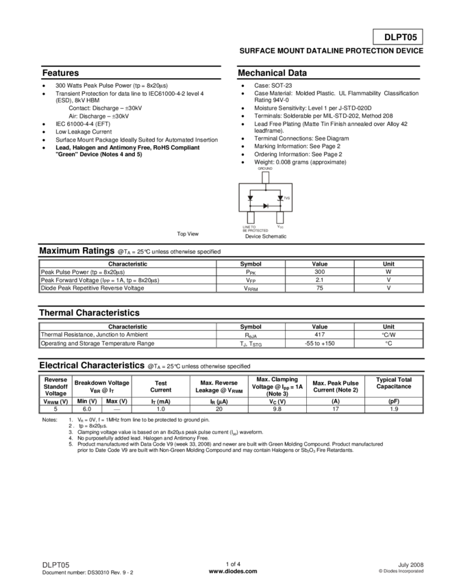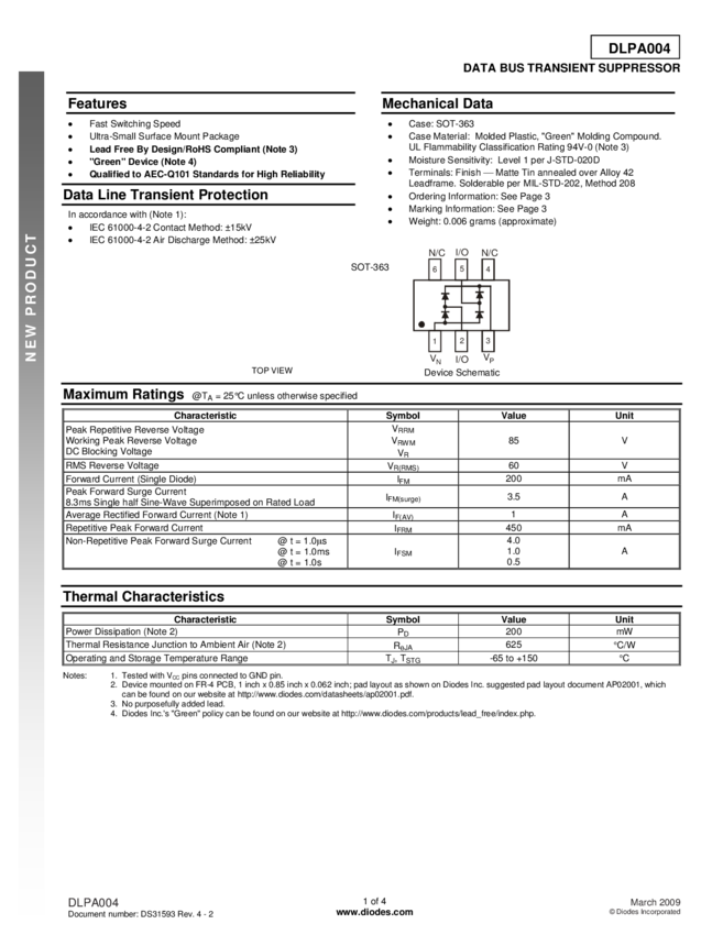 SURFACE MOUNT DATALINE PROTECTION DEVICE