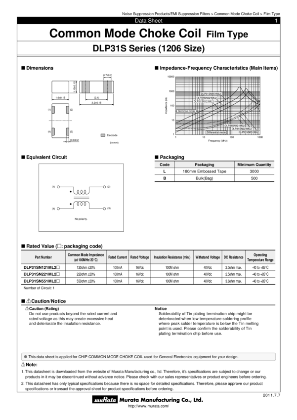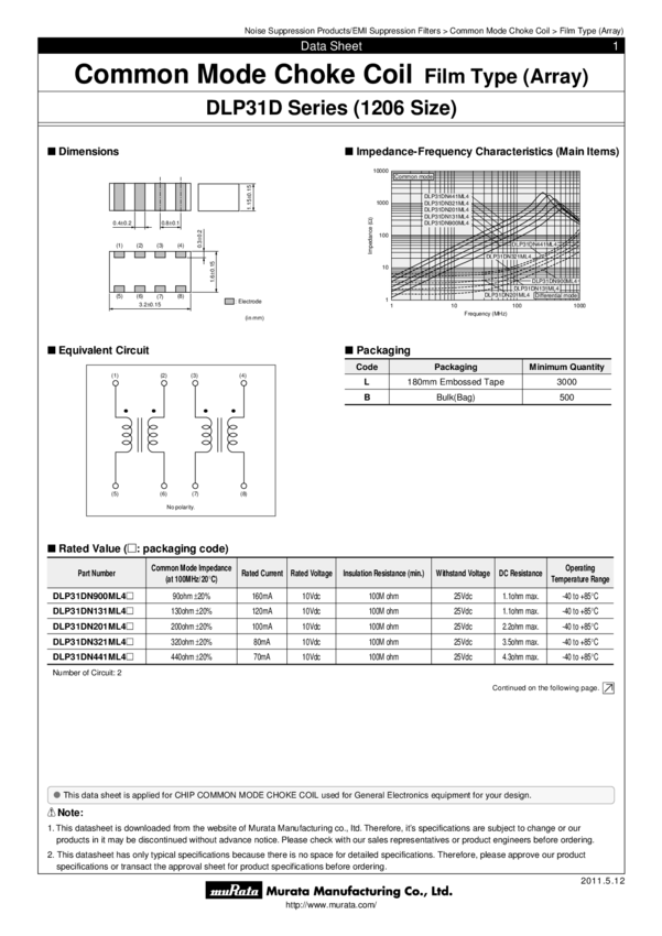 Ind Common Mode Choke Thin Film 130Ohm 20% 100MHz 120mA 1206 Embossed T/R