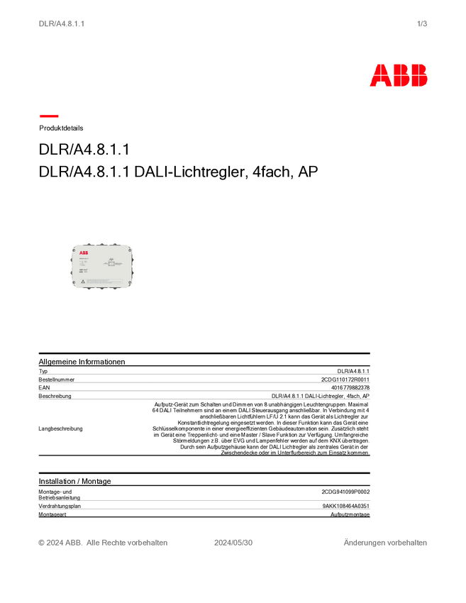 Moduł oświetlenia ABB 2CDG110172R0011 DLR/A4.8.1.1