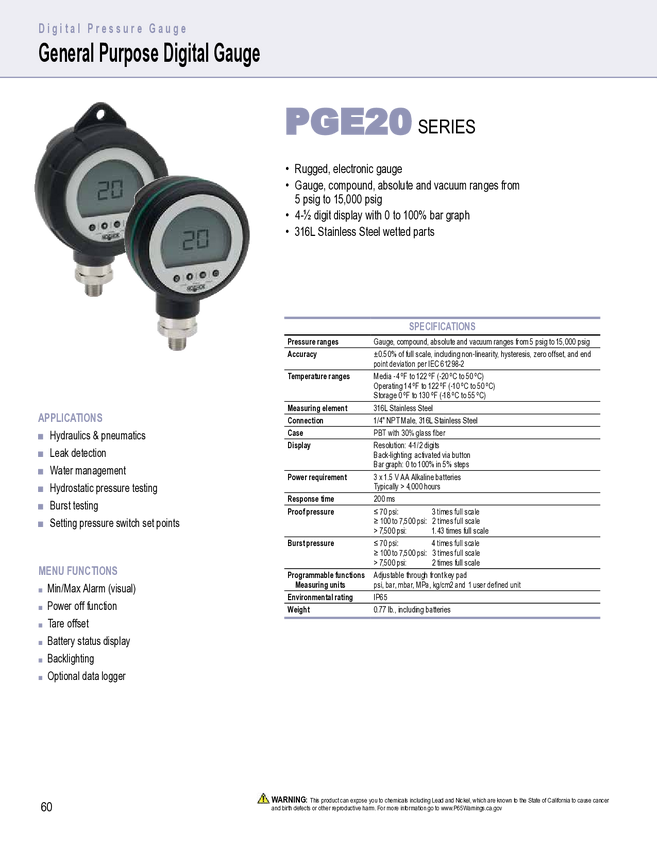 PGE20-500PSIG-1-2-DLRCPST8CC
