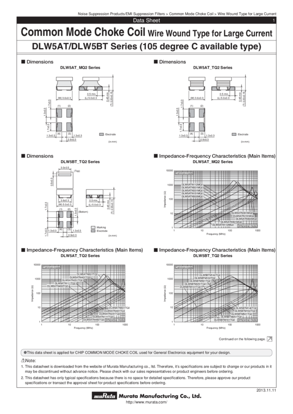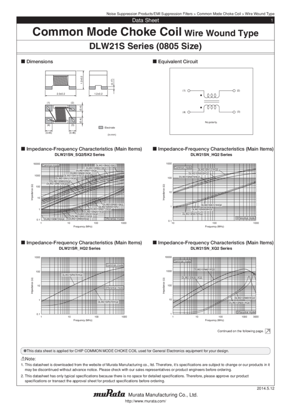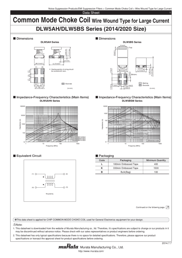 Ind Common Mode Choke Wirewound 1.4KOhm 100MHz 1.5A 2020 Embossed T/R