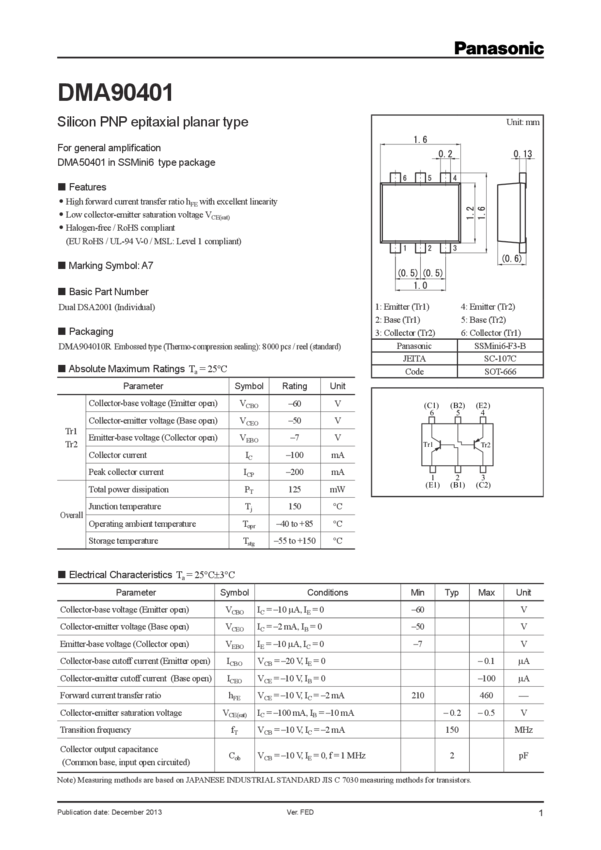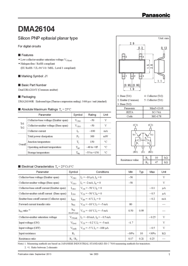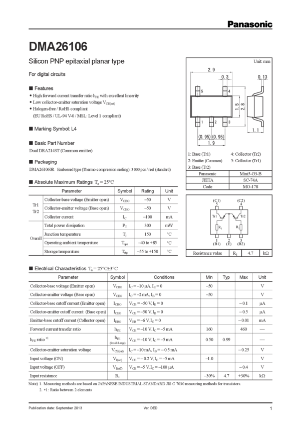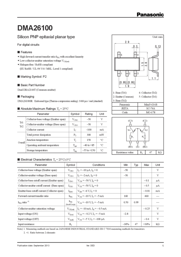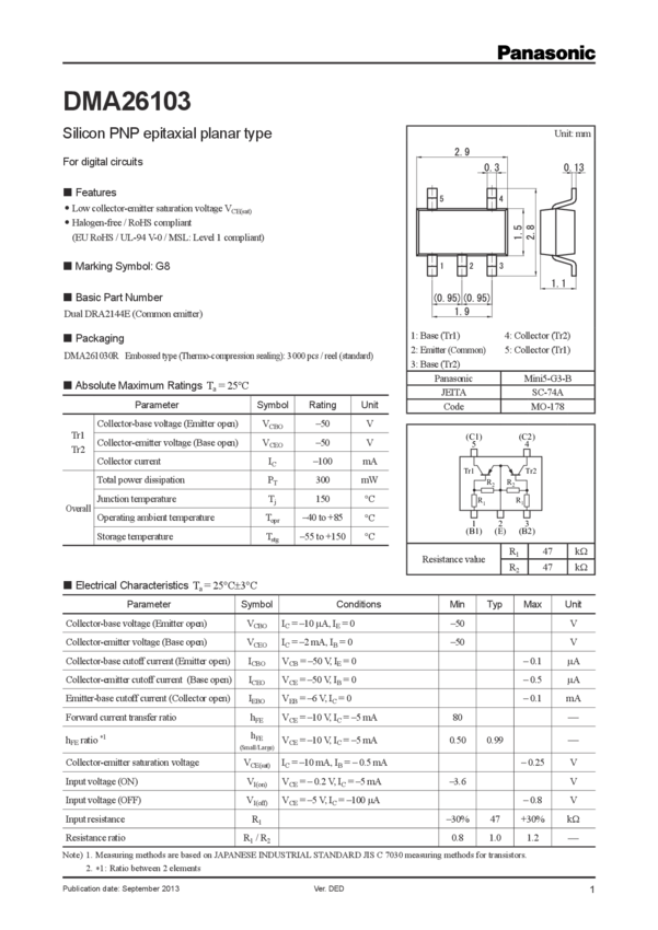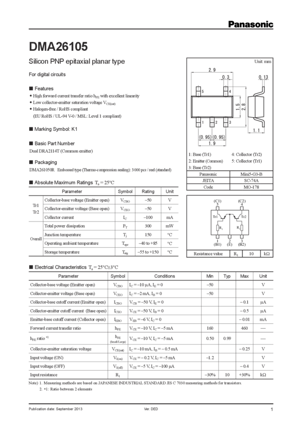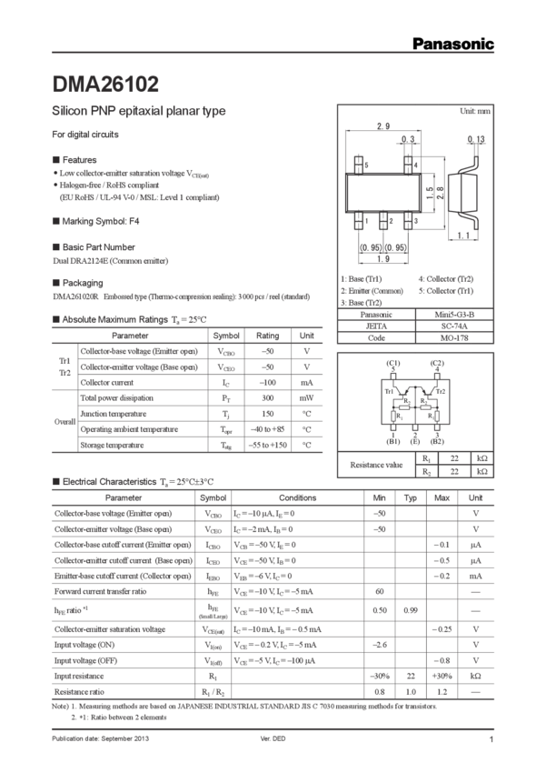 Composite Transistor with Built-in Resistors (PNP x 2 Series)