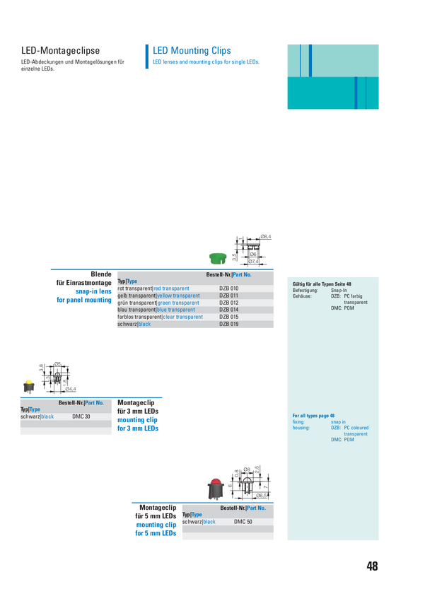 Klips LED DMC30, pasuje do diod LED 3 mm